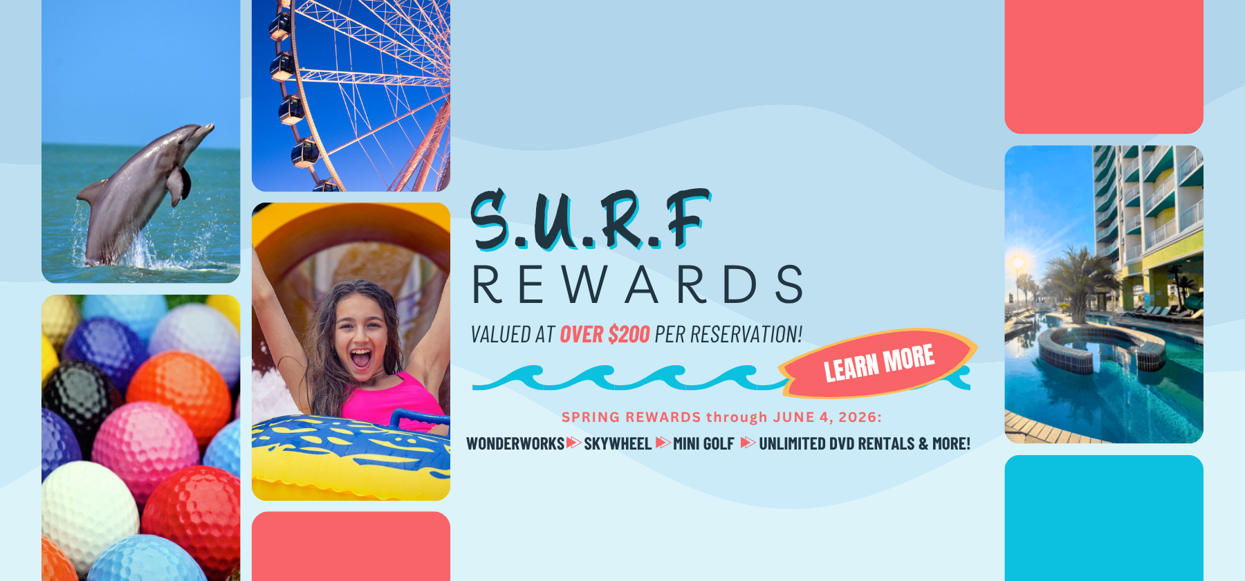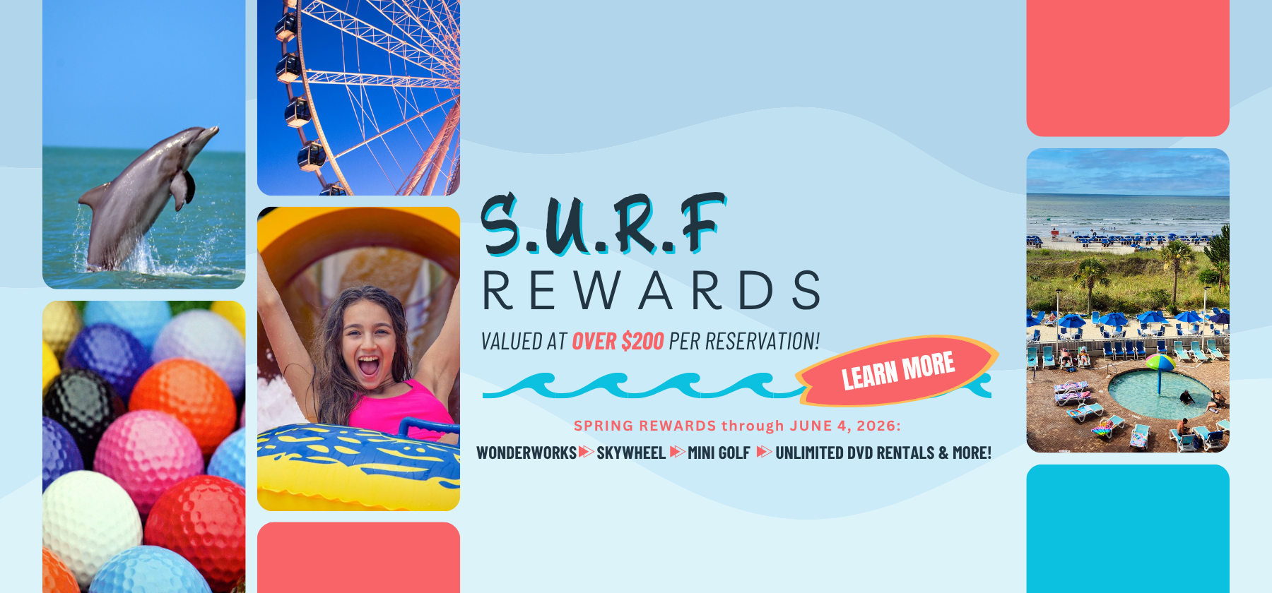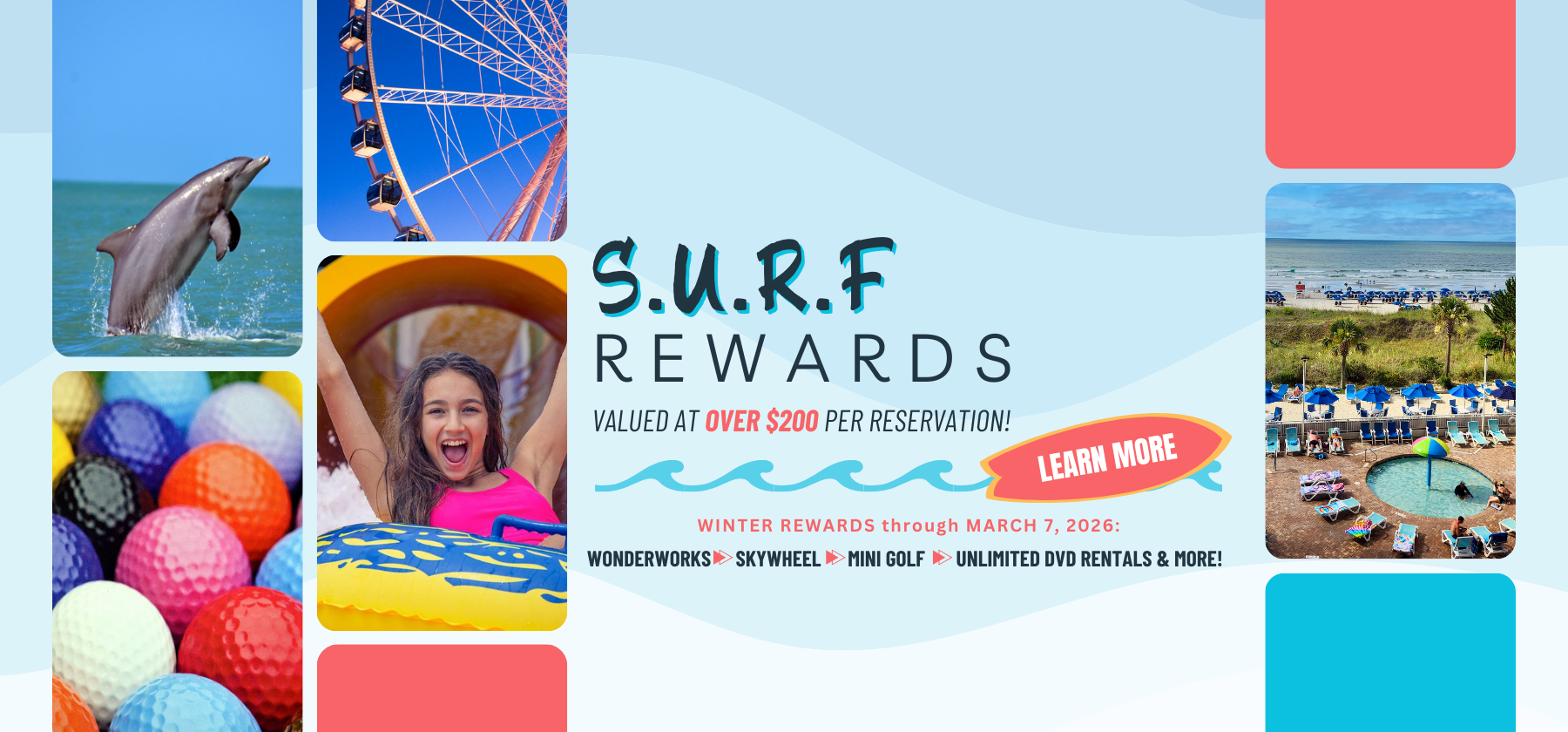 With over 13 million visitors annually, the Grand Strand is America's "Number One Family Beach." When you stay at the Towers you'll enjoy easy access to restaurants, stores and more from the comfort of these one, two and three bedroom condominiums. The area offers boundless recreation from lush parks to nature preserves, championship golf, boating and beyond. Experience the best of things to do in Myrtle Beach on your next family adventure, romantic escape or golf getaway and treat yourself to true Southern hospitality in a sublime setting.
